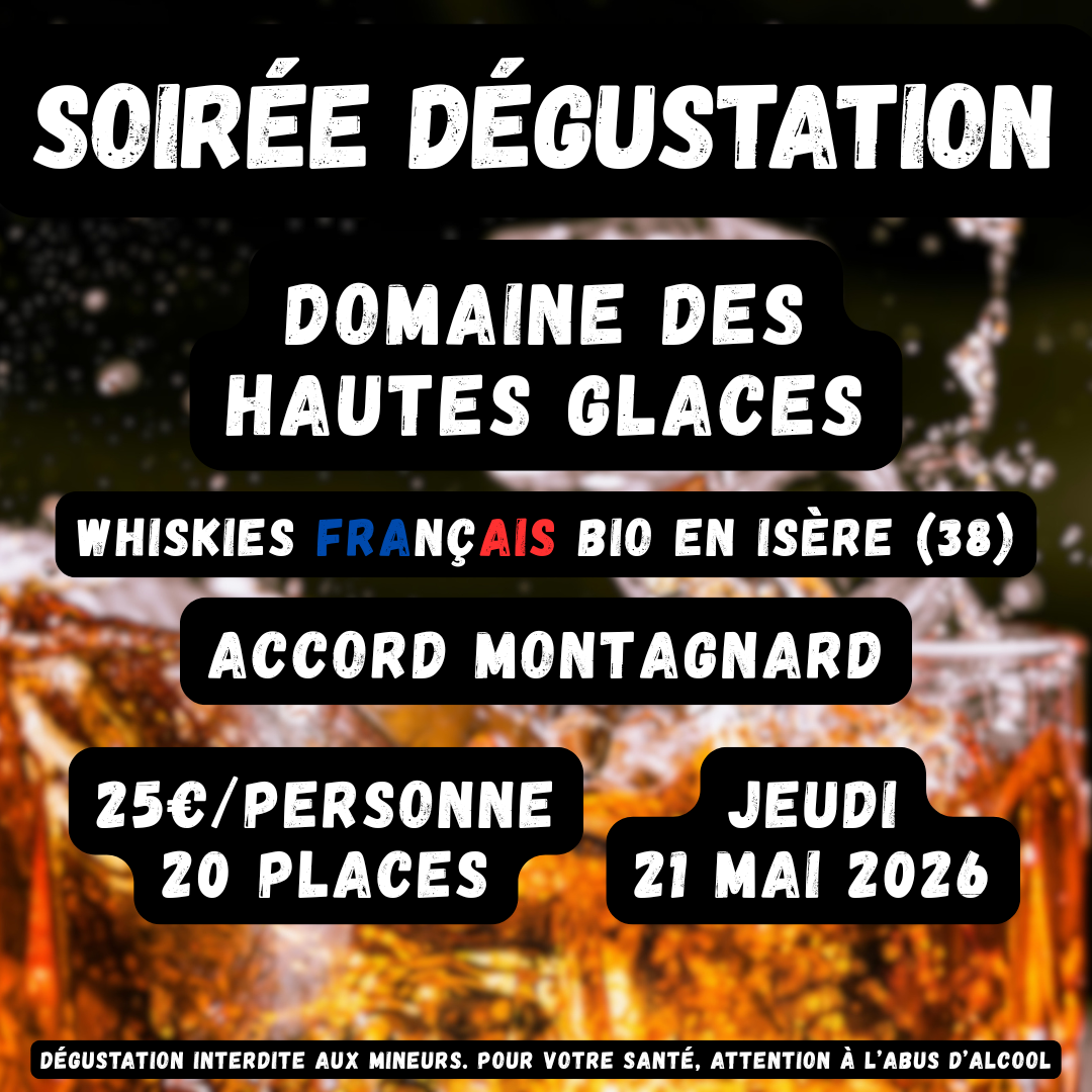 Jeudi 21 mai, dans votre magasin Hyperboissons à Nancy, soirée dégustation autour du Domaine des Hautes Glaces, whiskies français bio !